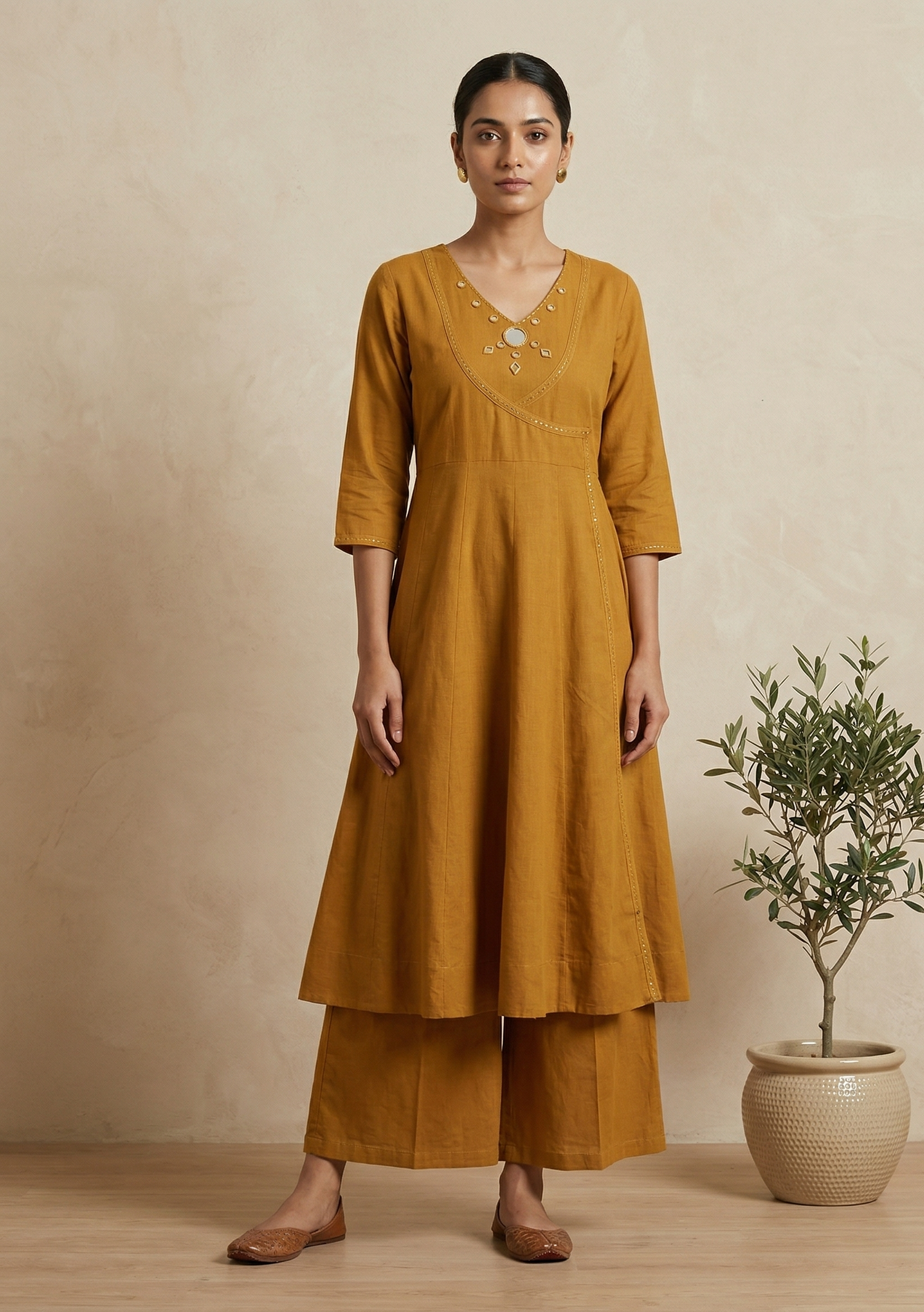 Mustard Ami Flex cotton Anarkali Kurta set