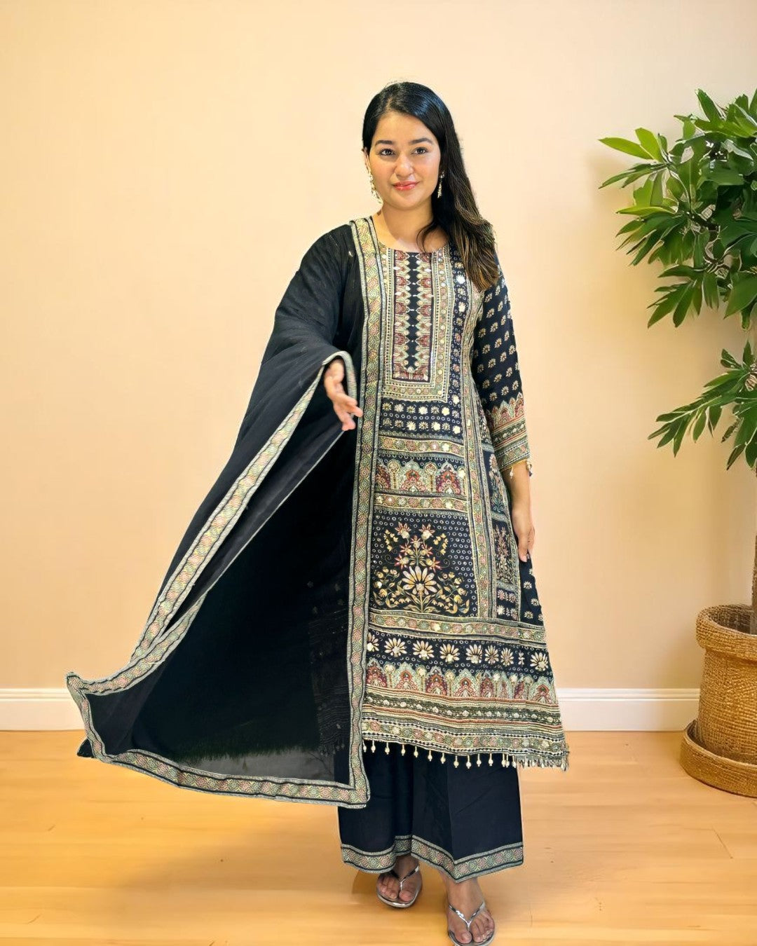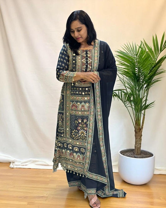 Black Kashmiri Georgette Embroidery sharara Indowestern set