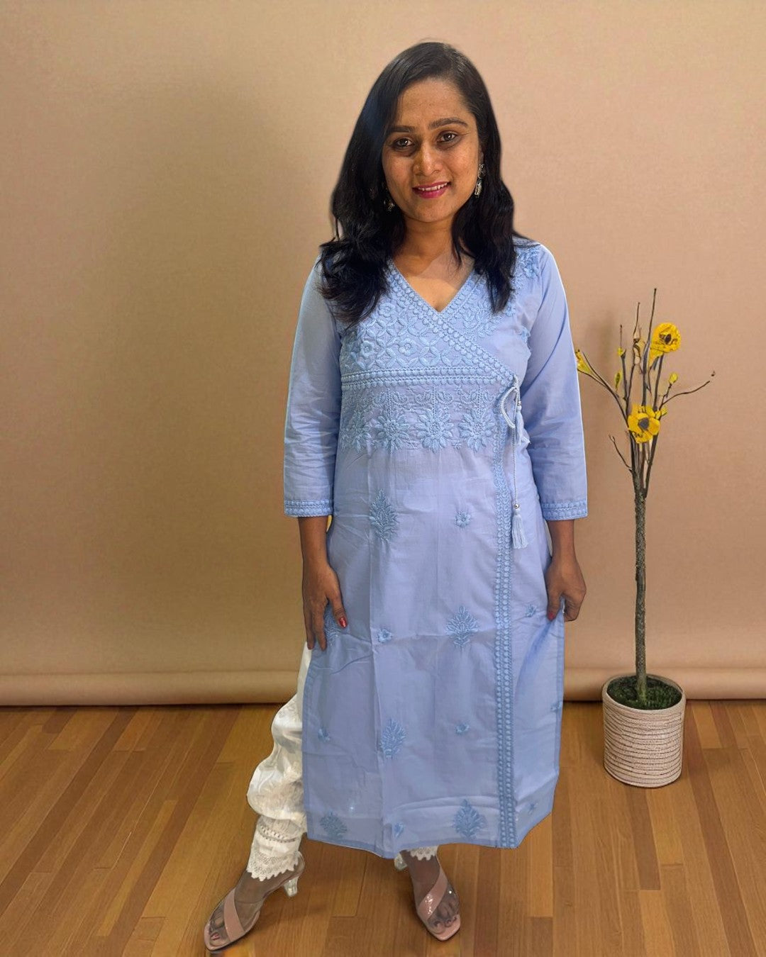 Sky Blue Chikankari Cotton Kurta