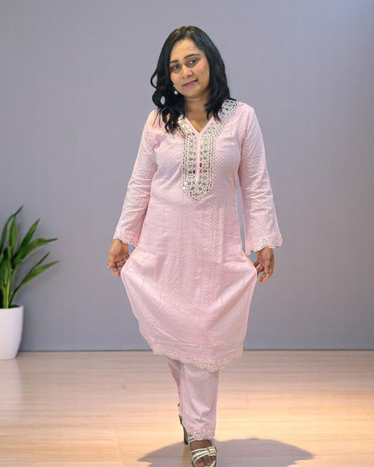 Off white Yuvika Khadi cotton Purple Embroidery Co-ord set