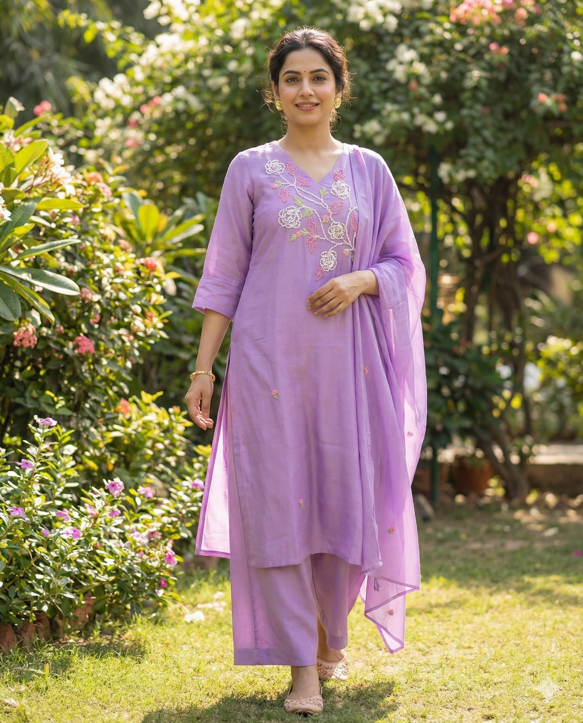 Elevate your formal wardrobe with this sophisticated Lavender Muslin Suit set. Crafted from breathable muslin fabric, it combines comfort with polished elegance—perfect for office environments, business meetings, or formal occasions. The refined lavender hue offers a contemporary alternative to traditional neutrals, allowing you to stand out while maintaining professional sophistication. Designed for all-day wear, this suit delivers both style and practicality for the discerning professional.