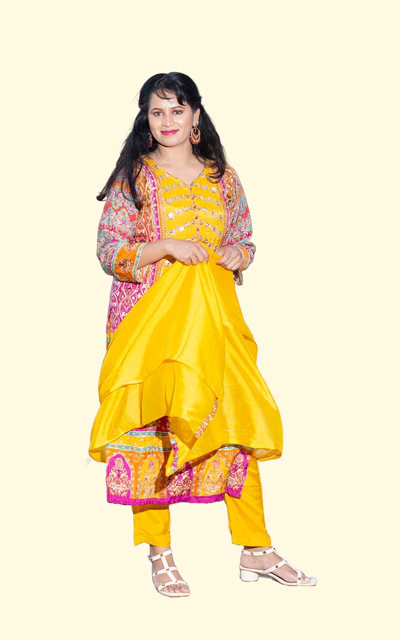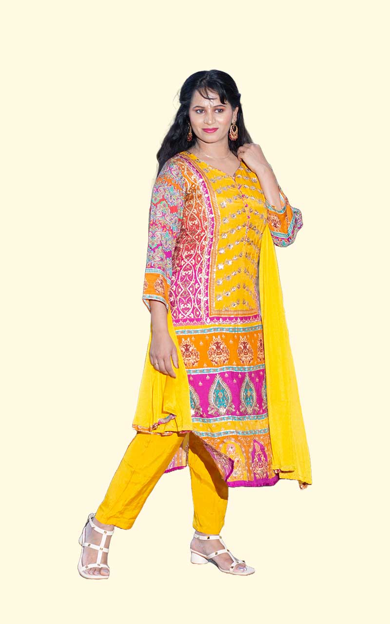 Upgrade your wardrobe with our Manju Yellow Modal Silk Suit Set. Made with luxurious modal silk, this suit set is perfect for any occasion. The soft fabric provides maximum comfort while the vibrant yellow color adds a touch of elegance. Elevate your style game with this must-have suit set.