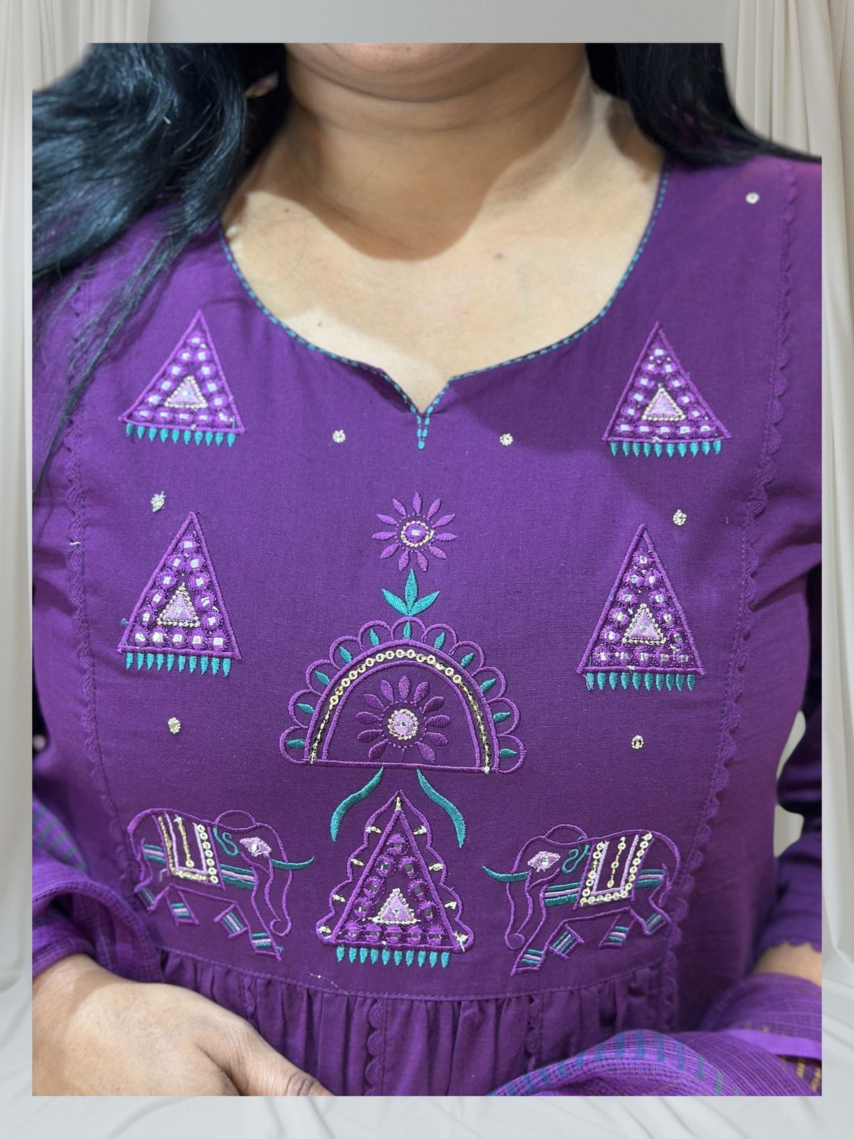 - Dupatta: A 2.25-meter Kota Doria Dupatta completes the ensemble, featuring a lightweight and airy texture for a graceful look.