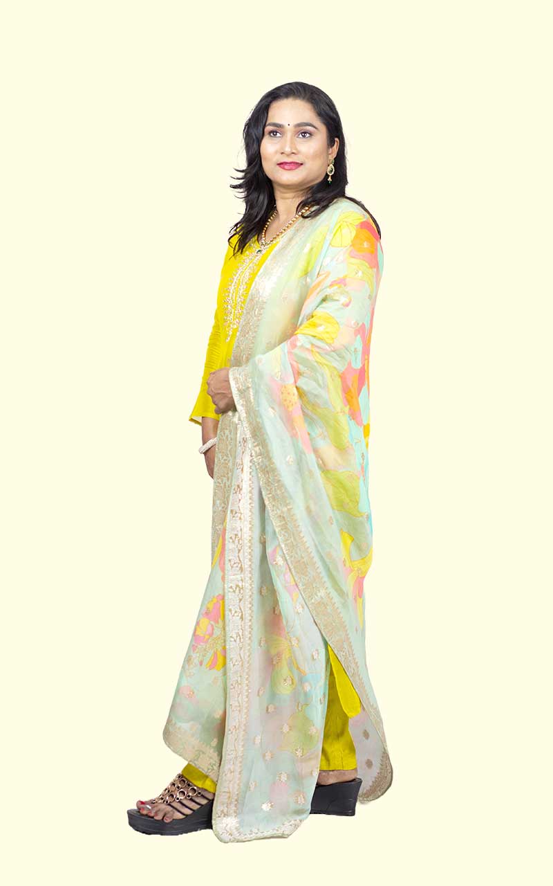 Yellow Organza Banarasi Suit Set