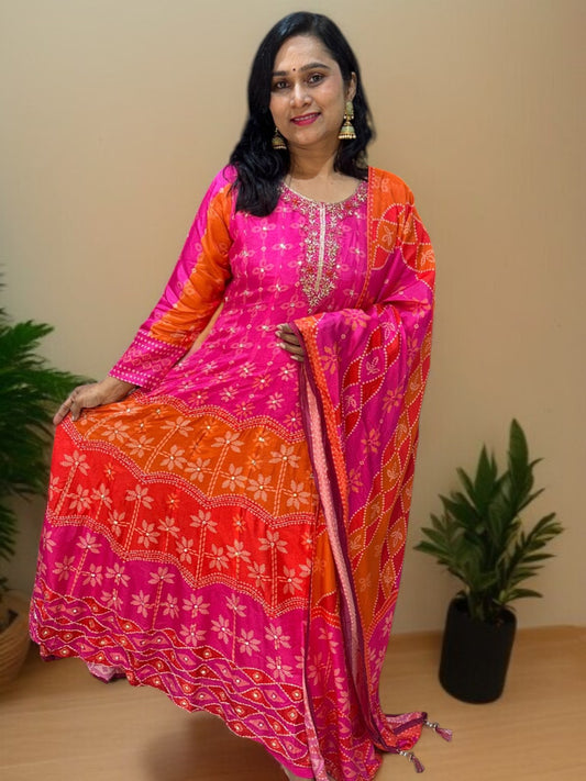 30% DiscountPink Misri Mul chandri Anarkali - set of 3