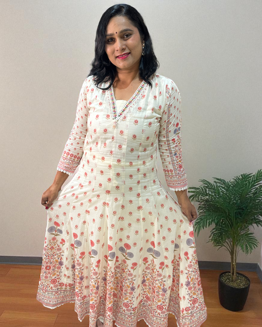 Teal Blue Ami Flex cotton Anarkali Kurta set